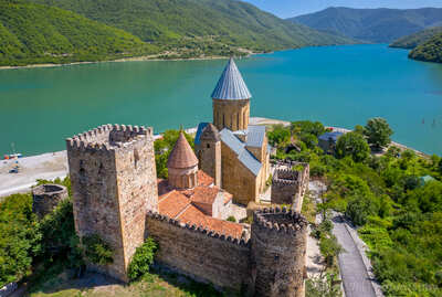 Ananuri  - is a fortress situated on the foreland by the Aragvi River, not far from Zhinvali water reservoir and about 70 km from Tbilisi, Georgia. It was built by the Dukes of Aragvi and its earliest parts date from the 13th century. The fortress is on the UNESCO Tentative list.